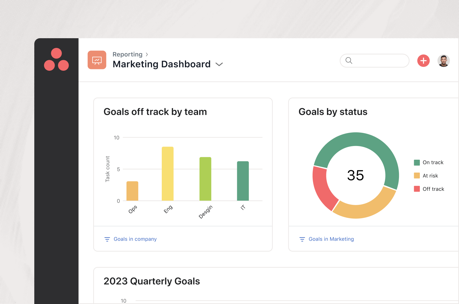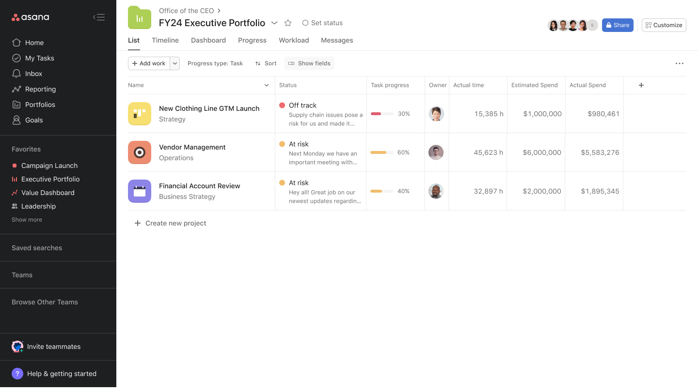 Strategische Ziele und Missionen lassen sich mit Asana einfacher verfolgen. Erhalten Sie Echtzeit-Insights durch Portfolios und Reporting, um informierte Entscheidungen zu treffen.